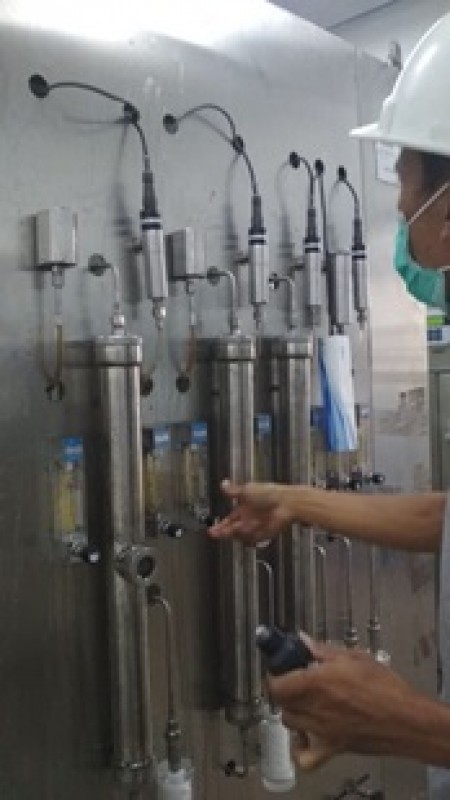 Pengukuran Conductivity Analyzer tidak akurat, karena aliran sampel air tidak normal , sensor juga mengalami kerusakan. Kami mengganti sensor tersebut dan melakukan regenenerasi resin agar analyzer tersebut bekerja normal
